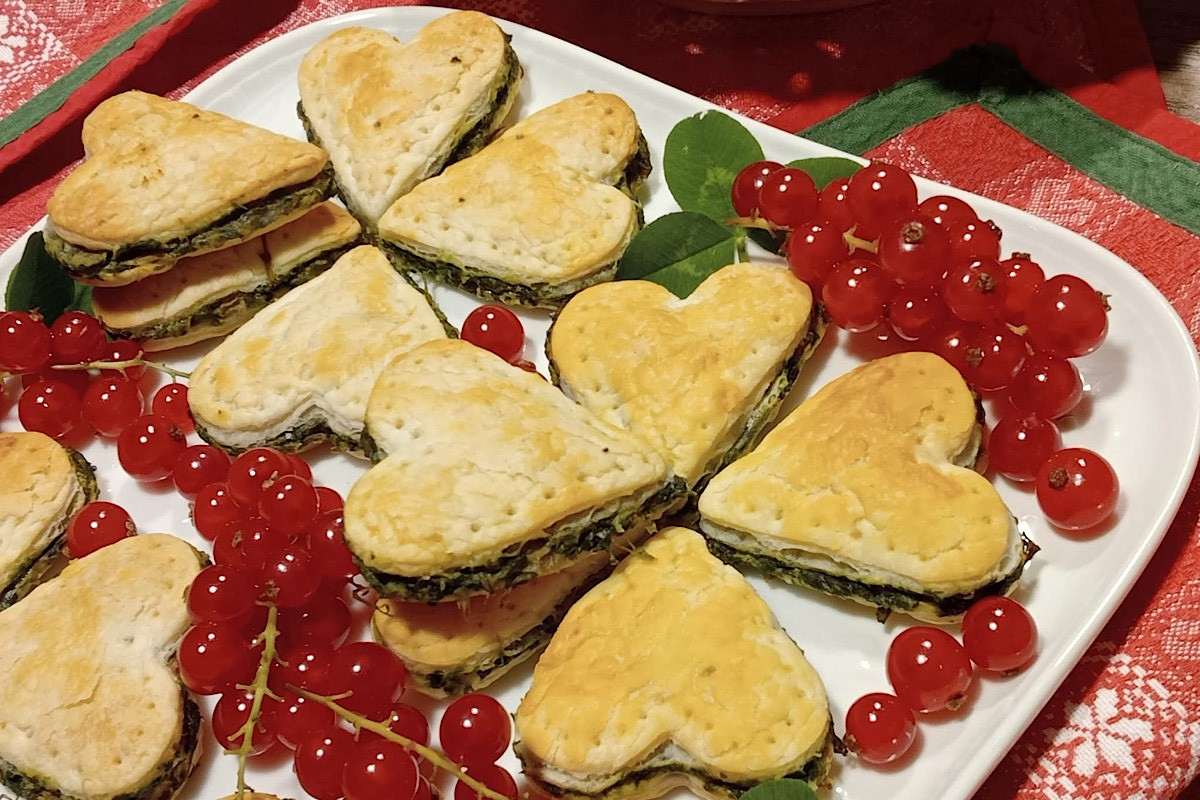 Dopo aver fatto i cuoricini, ti avanzeranno dei pezzetti di sfoglia farcita. Non sprecarli! Cuocili insieme ai cuori: saranno degli ulteriori “stuzzichini irregolari” che potrai anche sgranocchiare tu mentre cucini.