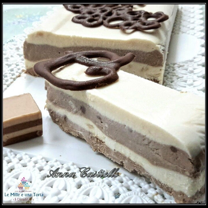 Lavorare il mascarpone per renderlo cremoso ed eliminare i grumi, aggiungere il latte condensato freddo ed il rum, amalgamare e riporre nel frigorifero. Montare la panna finché sarà ben soda, unirla gradualmente al composto di mascarpone, mescolando dal basso verso l’alto per evitare di smontarla. Dividere l’impasto a metà, incorporare la crema spalmabile al gianduia in una ciotola e quella nutkao nell’altra. Mescolare in modo omogeneo e riporre nuovamente nel frigorifero. Foderare con la pellicola per alimenti uno stampo per plumcake da 25 × 15 cm e versare la metà del composto bianco, livellare con una spatola e mettere nel freezer a rassodare. Ora disporre sullo strato bianco ormai indurito, la metà del composto al gianduia, livellare e mettere nuovamente nel freezer. Questi passaggi sono importanti per ottenere degli strati netti ed evitare l’effetto variegato nel gelato