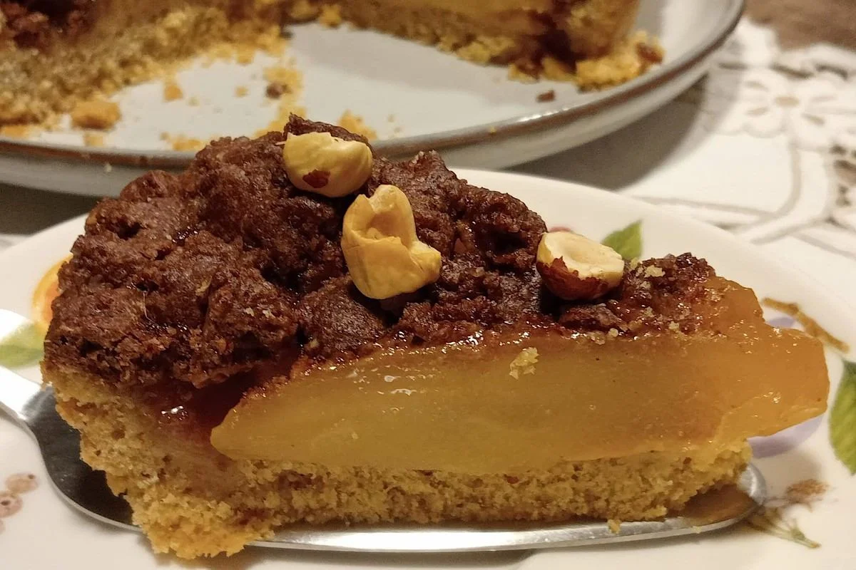 Un cuore morbido e goloso di pere caramellate caratterizza la farcitura di questo dolce perfetto sia a colazione che a merenda. La particolarità è la copertura: al posto della solita griglia, briciole di impasto al cacao. E tutto senza glutine.