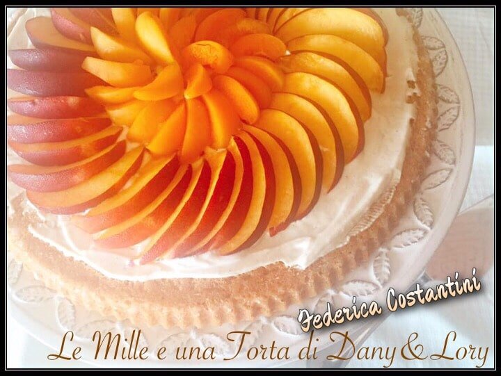 - Tagliare a fettine sottili la frutta e decorare la vostra crostata morbida alle pesche senza burro e uova