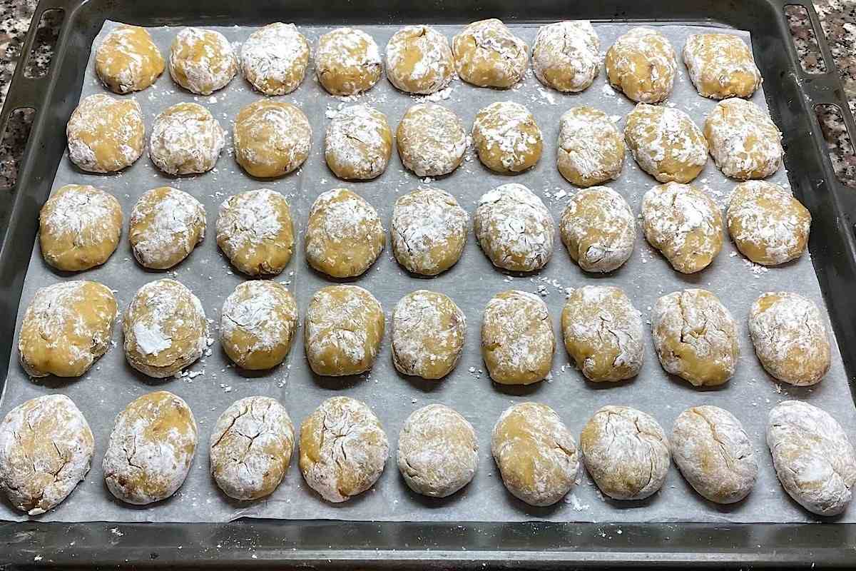 - Una volta terminato, disporre i biscotti sulla teglia, schiacciandoli leggermente e allungandoli per dare una dimensione uniforme.